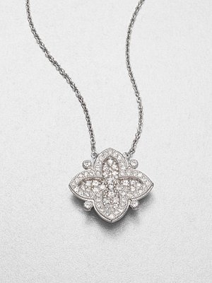 From the Soho Collection. This clover-shaped design features white sapphires on a sterling silver link chain.